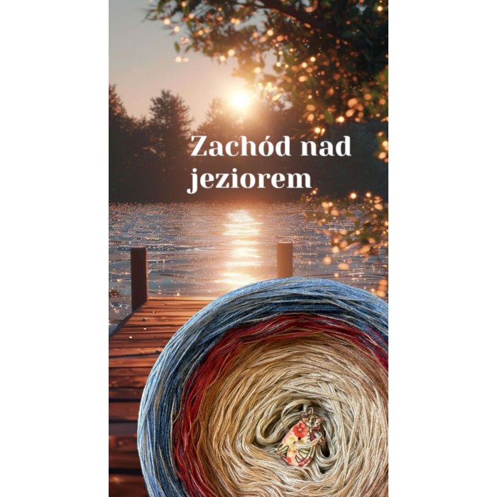 Motek ombre złożony odpowiednio z 3 nitek łączonych ze sobą kolor po kolorze plus jedna dodatkową w kolorze ciepłego beżu idącą przez całość długość motka. Jest to to nitka cieńsza i delikatnym połysku.